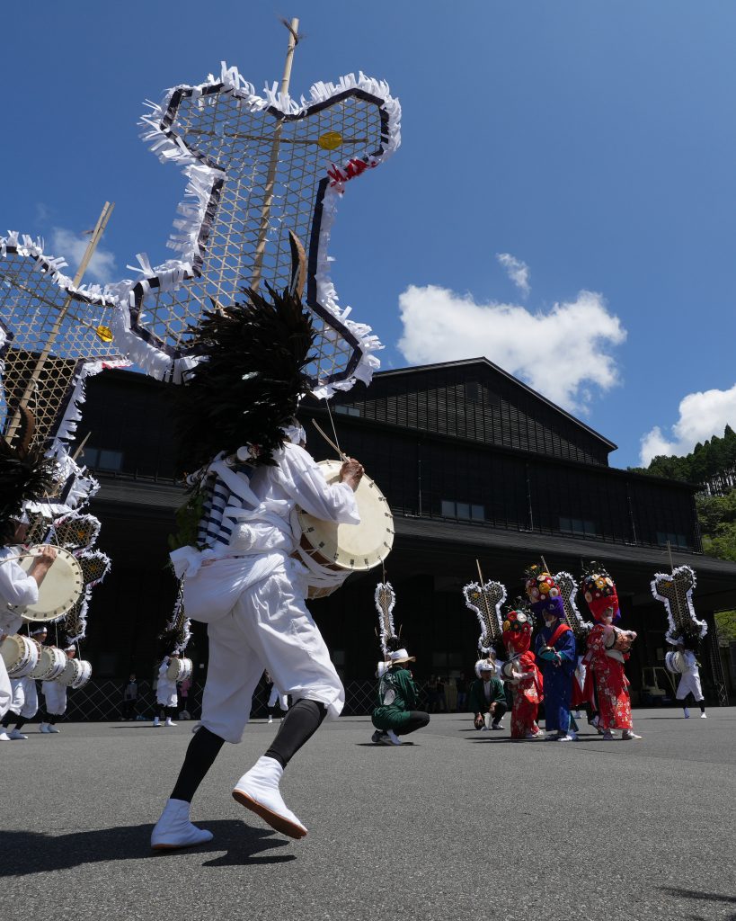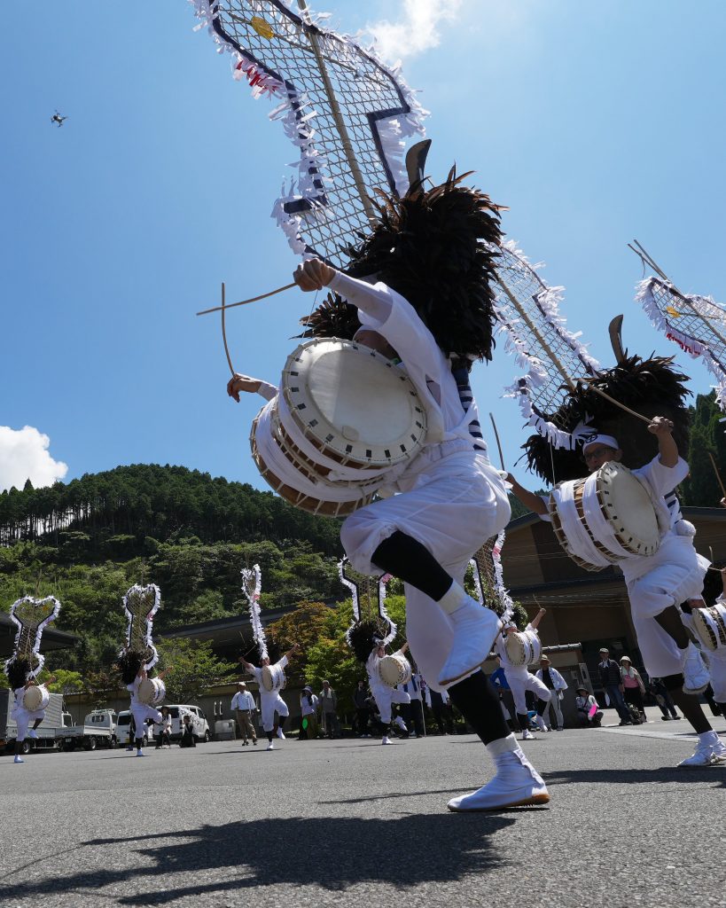 2メートルもある⽮旗を地⾯に着くほど振り、太⿎を演奏しながら踊ります。
