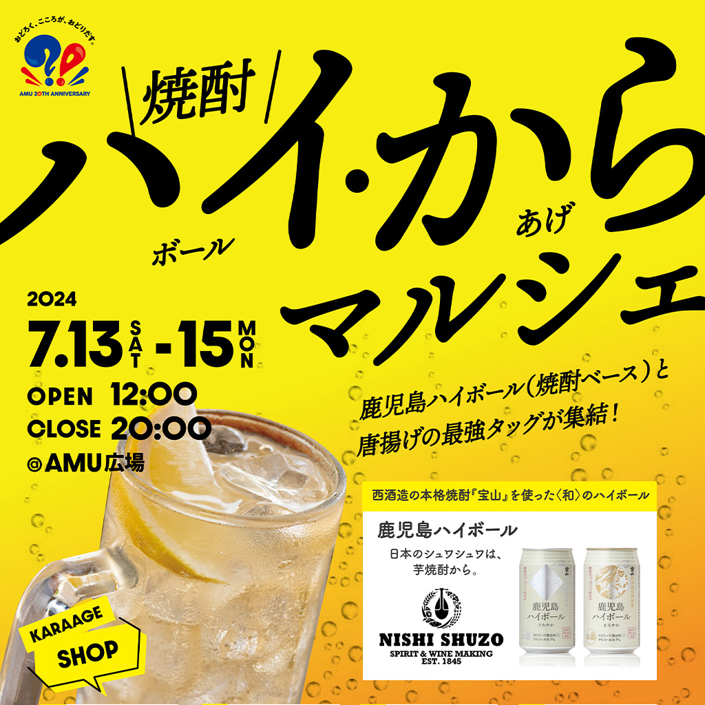 今週末7月13日(土)〜15日(月)の3日間、アミュプラザ鹿児島で開催される「ハイ・からマルシェ」に西酒造が出店いたします。