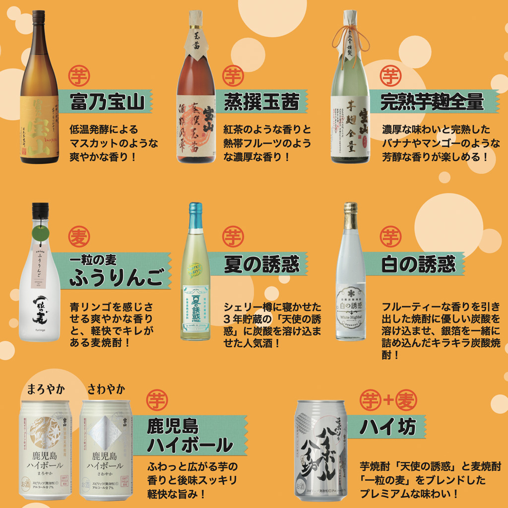 会場では、西酒造の芋焼酎「宝山」を使用した「鹿児島ハイボール」や、「富乃宝山」、「蒸撰玉茜」などをハイボール(ソーダ割り)でお楽しみいただけます😆😆⤴️
