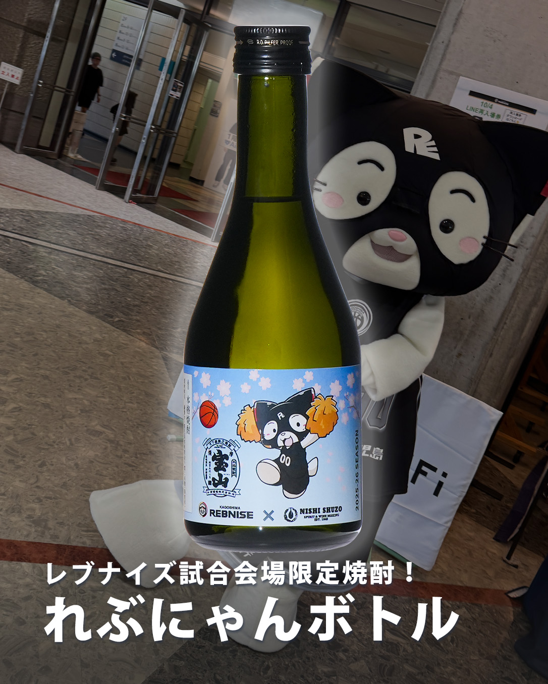 11月より、鹿児島レブナイズの2025-26シーズン・オフィシャルトップパートナー就任を記念して、〈レブナイズ会場限定〉れぶにゃん宝山ボトルを発売中です🔥😺✨