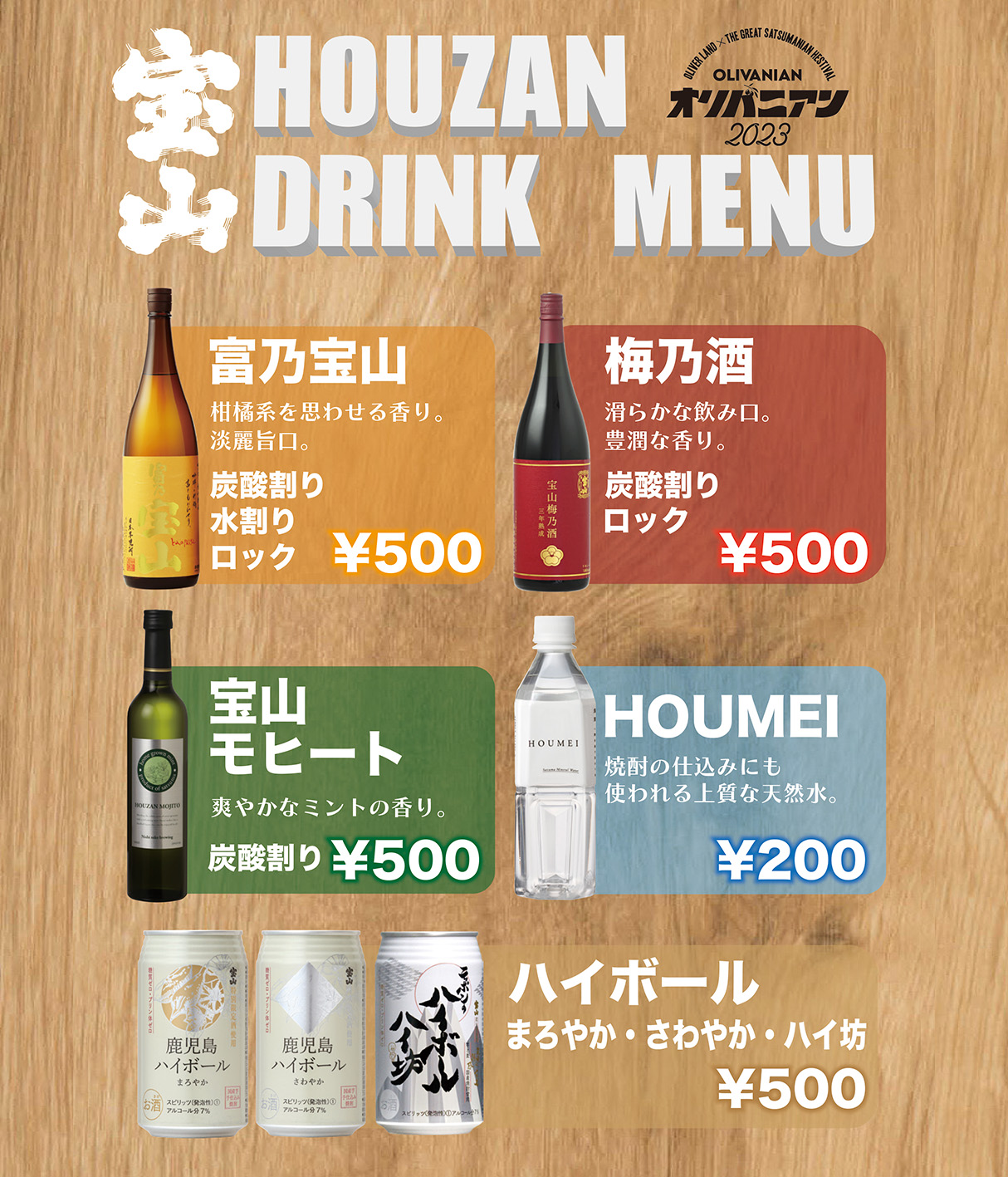 西酒造のブースでは、富乃宝山のソーダ割り(#トミソー)や、宝山梅乃酒、宝山モヒートなどをご用意してお待ちしております😆🎶夜は、少し冷えることも予想されますので、薩摩宝山のお湯割りもご用意🎵