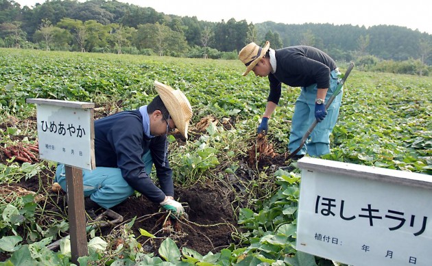 「宝山吟味蔵のメンバーが種芋を収穫しています。」