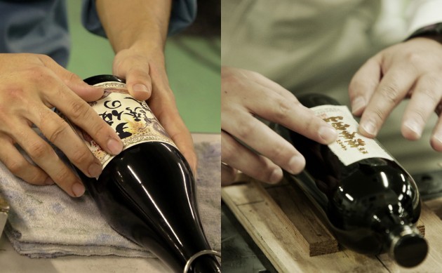 ご紹介の写真は、杜氏達が手作業でラベルを貼っている様