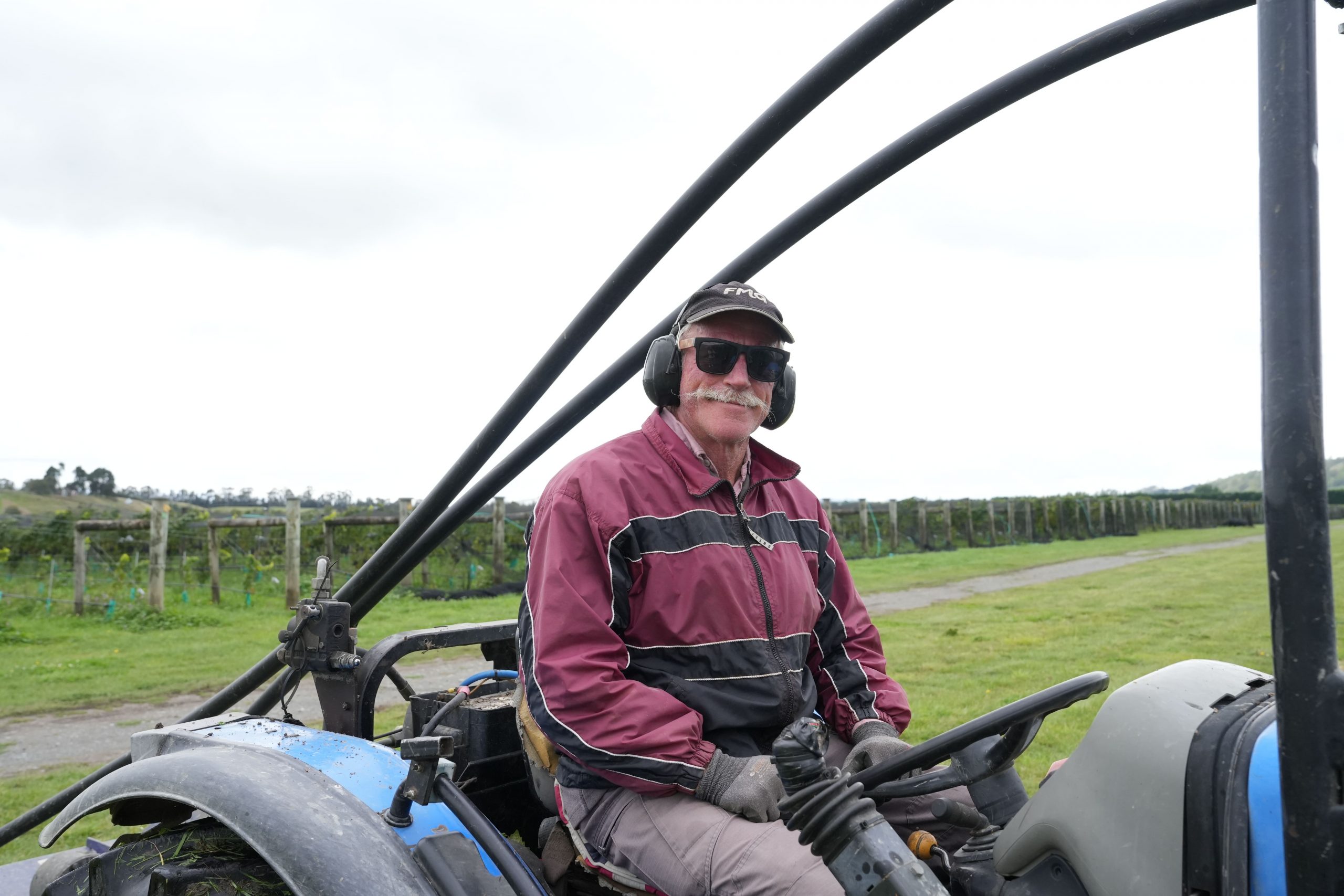 Brianさん。 穏やかな人柄で、運搬車を巧みに操り、収穫したブドウをスムーズに運搬しています。