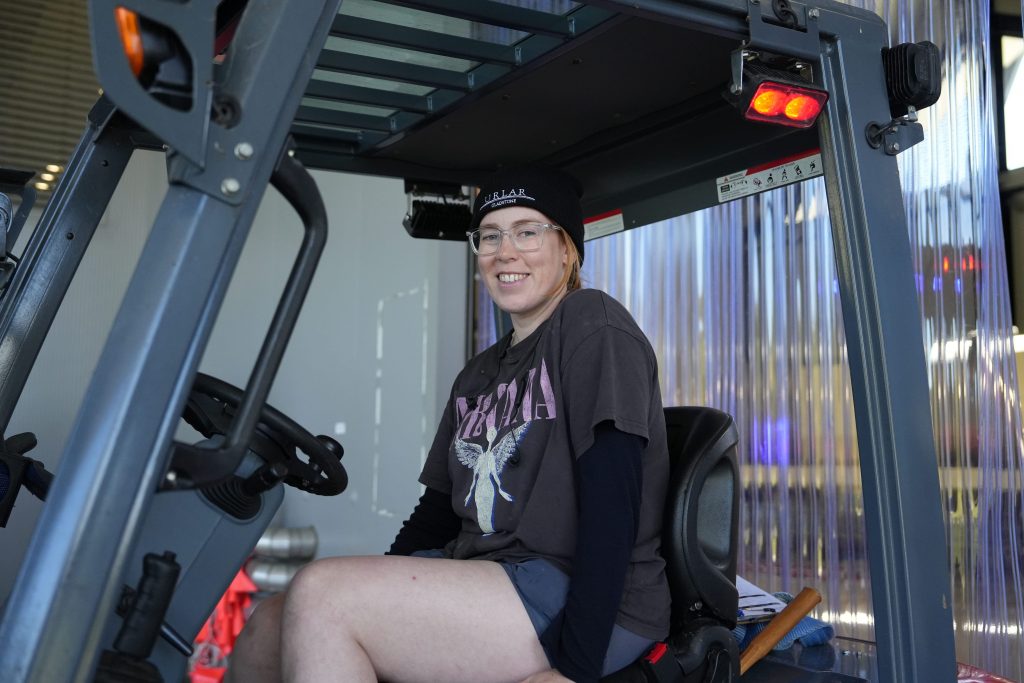 Graceさん。フォークリフトを鮮やかに操り、URLARワインの仕込みを担っています。