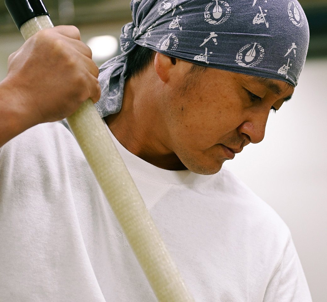 鹿児島の大地で磨き上げられた水に浸し、米によって異なる最適な吸水率を見極めます。